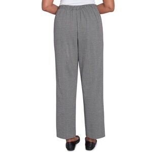 Experience the perfect blend of comfort and style with these Alfred Dunner gray trousers. Featuring a relaxed, straight-leg silhouette and an elastic waistband, these trousers are designed for everyday versatility. The soft knit fabric adds a touch of elegance to your casual wardrobe.