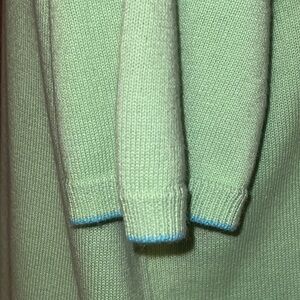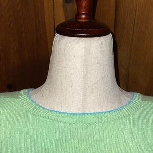 Beautiful green Crew Neck Sweater with blue trim , beaded and embroidered Butterfly 🦋 & 🌸 Flowers.