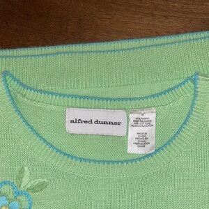 Alfred Dunner Green Butterfly & Floral Embroidered Short Sleeve Sweater Sz. S