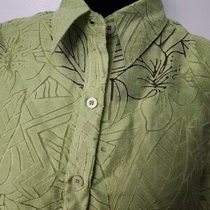 Alfred Dunner Green Sheer Floral Blouse 12P
