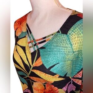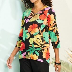 Alfred Dunner Island Vibes Sharkbite Tropical Floral Top in Size Large