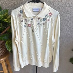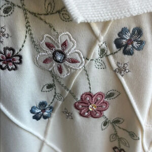 Alfred Dunner Ivory Floral Embroidered Jacket
