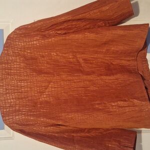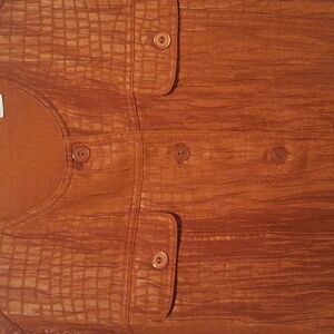 Rust colored Alfred Dunner button up jacket. Faux front pockets. Side pockets. 23" pit-to-pit. Has a little stretch to it.