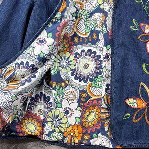 Alfred Dunner Jacket Women Floral Denim Collared Open Front Casual Embroidered 8