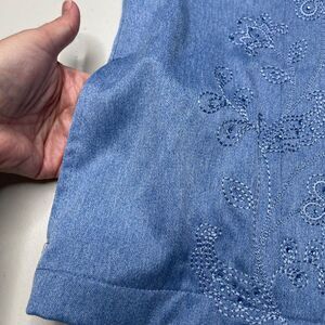 Alfred Dunner Jacket Womens 14 Blue Chambray Color Floral Embroidery Full Zip