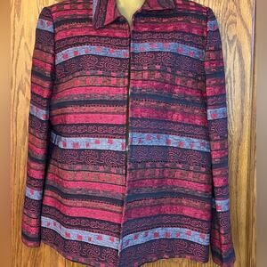 Alfred Dunner Jacket in Red, Black, Gray Stripes with Black Sequins Size 10