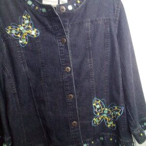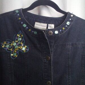 Alfred Dunner Jean Jacket 10P 10 Petite Button Up Butterfly Beading Denim Blue