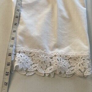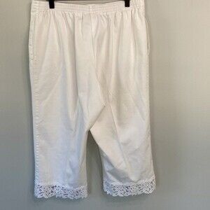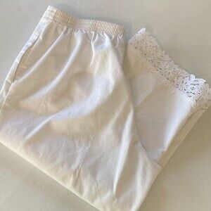 These cute cotton white with lace detail on the hem pull on cropped grandma pants are so comfy to wear.