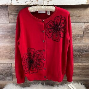 Alfred Dunner Ladies Dress Button Up Embroidered Sweater Cardigan, Size S Red