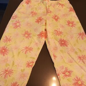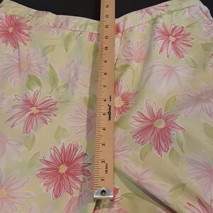 Alfred Dunner Light Green with Pink Floral Print Capris with Pockets