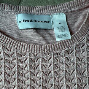 Alfred Dunner sweater XL, pointelle knit top, pastel pink blouse, lightweight short sleeve knit, classic women’s shirts, vintage-inspired style, women's blouse