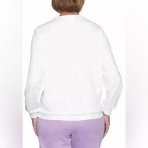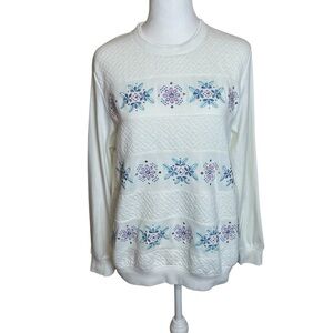 Alfred Dunner Long Sleeve Spliced Biadere White Embroidered Flowers Small Medium