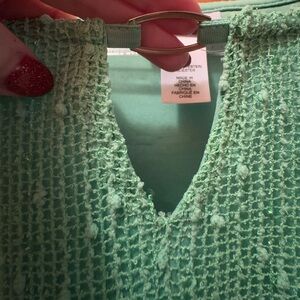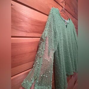 Alfred Dunner M popcorn knit sequin pullover top with keyhole opening.