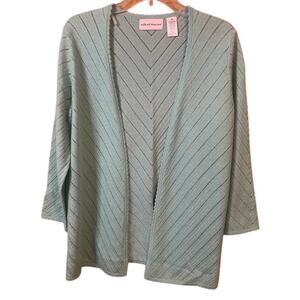 Alfred Dunner Mint Green 3/4 Sleeve Spring Cardigan Sweater Size M