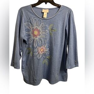 Alfred Dunner Moody Blues Floral Embroidery Top size Medium