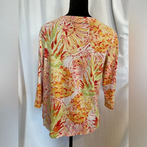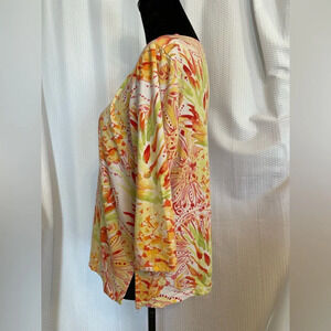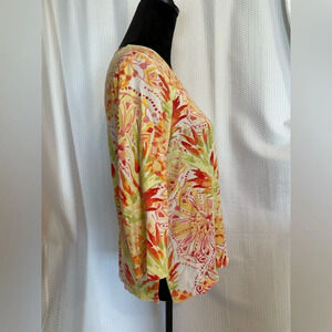 Alfred Dunner Multicolored V-neck 3/4 Sleeve Blouse Size Small