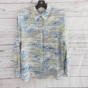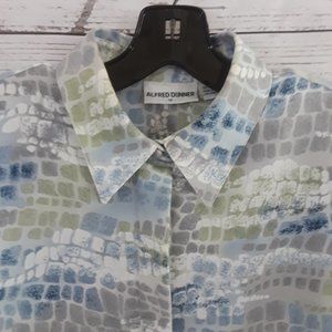 Alfred Dunner Women's 12 Blue/Gray Silky Long Sleeve Blouse Top Shirt NWOT WS331