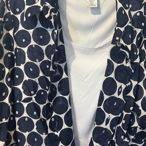 New Alfred Dunner 2pc blouse set. Navy and white polka dots. 3/4” sleeves. Outer top is 100% cotton, shell is all white 100% polyester.