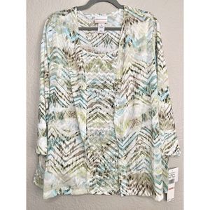 Alfred Dunner NWT Turquoise Patterned Cardigan Blouse Womens Plus Size 2X