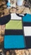 Chic top with navy and teal color blocks. Short sleeves and modern design.