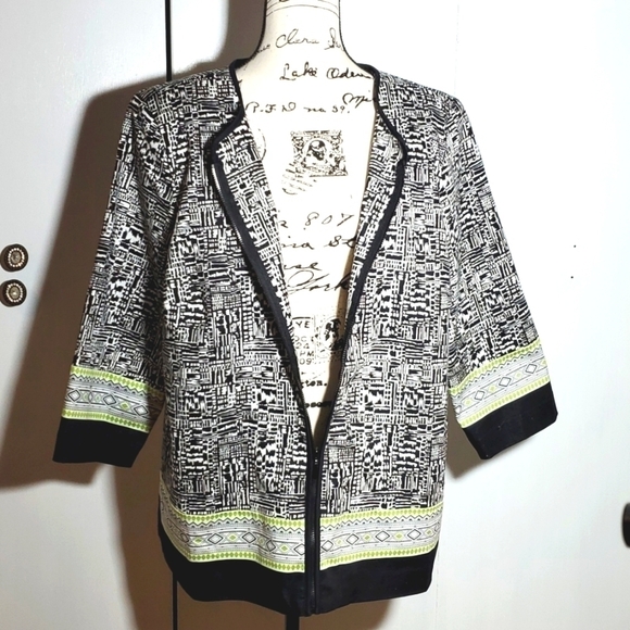 Alfred Dunner- New Womens Geometric artsy Zipper Coat Blazer Black/white sz.16