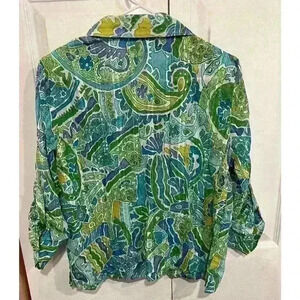Alfred Dunner Ocean Print Button Down Blouse Sz 10P 3/4 Roll-up Sleeves