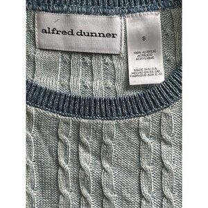 This Alfred Dunner sweater blends comfort and style with its ombre blue gradient and cable knit pattern. Crafted from 100% acrylic, it's lightweight and cozy.