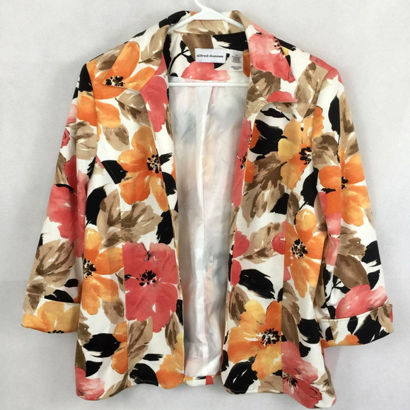 Alfred Dunner Open Front Blazer Jacket Women Sz 12 Hawaiian Tropical Fully Lined