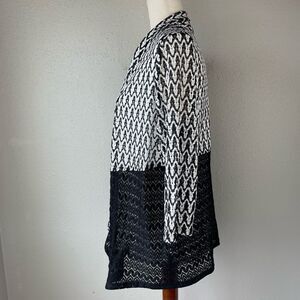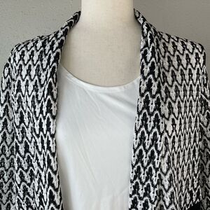 Stylish top by Alfred Dunner featuring built in white tank top and open front style cover. Measures 21 inches armpit to armpit lay flat and his 24 inches in length from the shoulder to the hem.