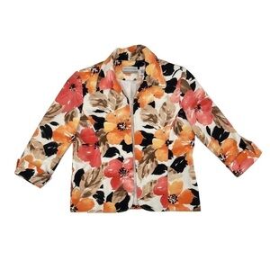 Alfred Dunner Orange Floral Long Sleeve Jacket Size 6 Petite Women’s