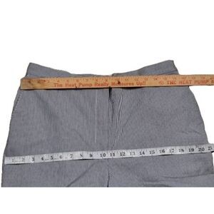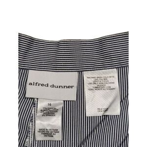 Stylish Alfred Dunner pinstripe capri pants in a women's size 16. These pants feature a blue and white design, an elastic waist, and an ankle length cut. Perfect for summer or spring wear.