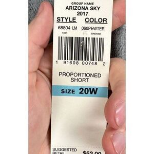 Tag size 20W Plus Actual Measurements waist size is 39 and inseam size 28 (see pictures showing measurements).