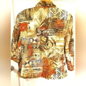 Beautiful tribal print Alfred Dunner Petite Blazer in earth tones, in great condition, size 16P.