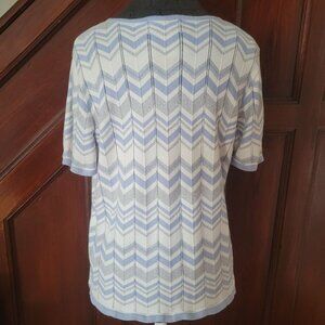 Alfred Dunner Petite Chevron Knit Top PL Light Blue & White Short Sleeve Metalli