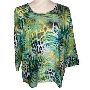 Alfred Dunner Petite Island Vibes Cheetah Tropical Leaf Tunic in BLU & GRN SZ PL