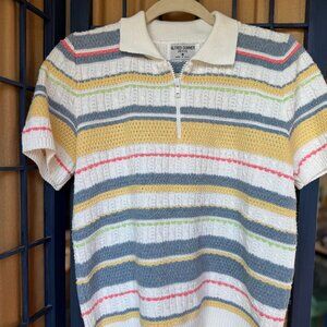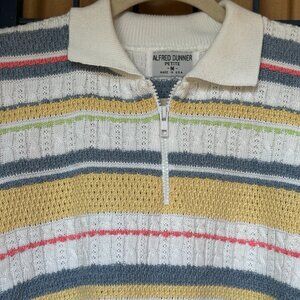 Alfred Dunner Petite Medium Striped Knit Zip Collar Top