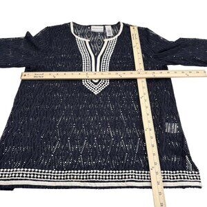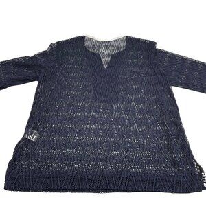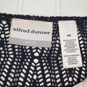 Alfred Dunner Petite Navy Crochet Tunic Top PM 3/4 Sleeves Pullover