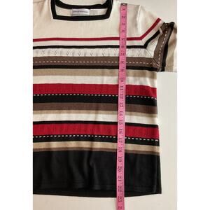 Elevate your wardrobe with this charming Alfred Dunner Petite sweater! The ivory and multi-color design is sure to brighten up any outfit. It's a lightweight sweater with 3/4 sleeves, perfect for transitioning between seasons.