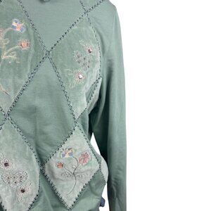 Alfred Dunner Petite Sage Green Floral Embroidered Sweatshirt PM