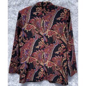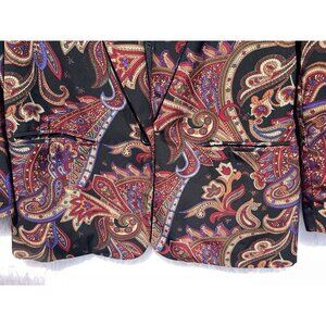 Alfred Dunner Petite Size 8 Long Sleeve Black Blazer Paisley Print Shoulder Pad