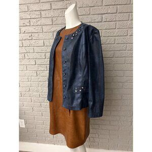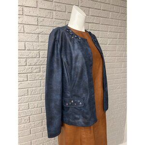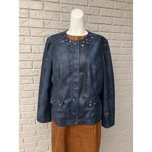 Alfred Dunner Petite Women Navy Faux Leather Embellished Jacket Size 16P