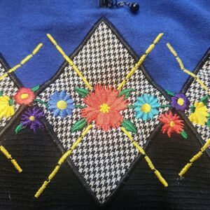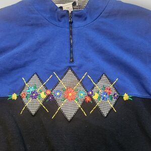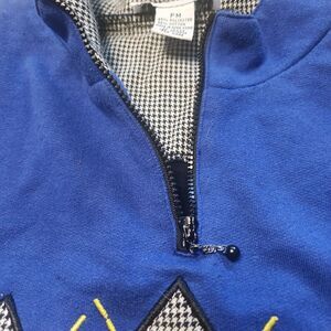 Alfred Dunner Petite Women's PM Black Blue Colorblock 1/4 Zip Long Sleeve Top