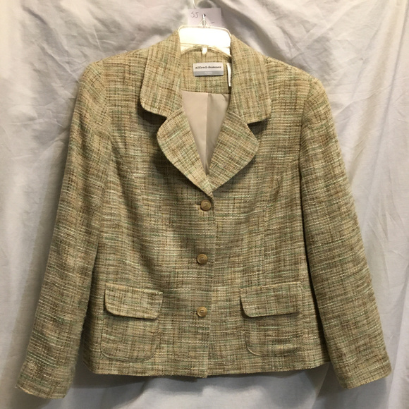 Alfred Dunner beige, brown and green tweed color blazer, jacket or coat.