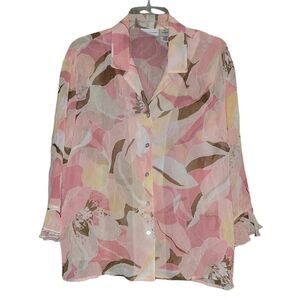 Alfred Dunner Petite size 16 semi sheer button down 3/4 sleeve shirt