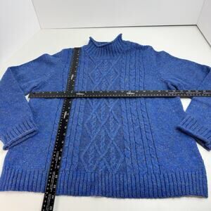 Alfred Dunner Petites Mock Neck Cable Knit Sweater Royal Blues Metallic Threads