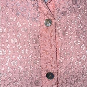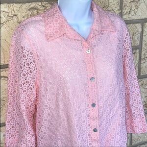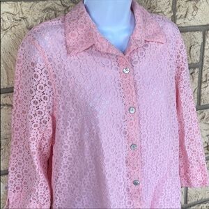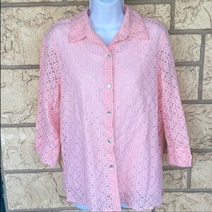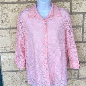 Alfred Dunner Pink Lace long sleeve Top button Casual