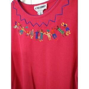 Alfred dunner pink embroidery people round neck casual pullover top in good condition. Pink short sleeve zig zag embroidery design. Straight hemline with side slits