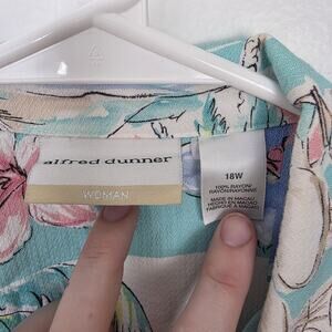 Alfred Dunner Pink White Blue Pastels Tropical Vacation Button Up Shirt Size 18W
