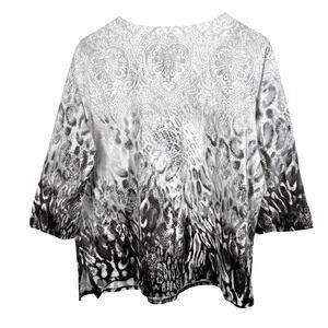 Alfred Dunner Plus Size 1X Gray White Sparkly Animal Print Blouse Shirt Top
