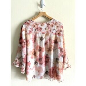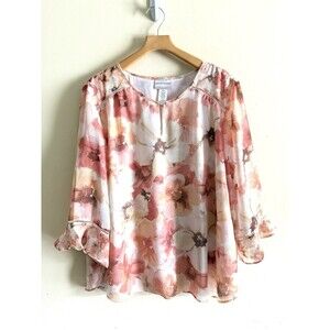 Alfred Dunner Pretty Chiffon Floal Blouse Peach Colors Plus Size Women’s 24W